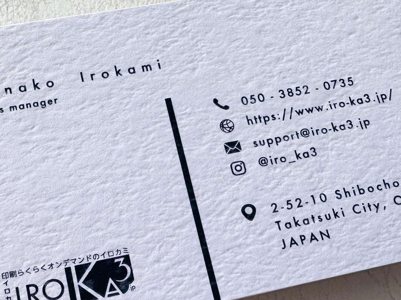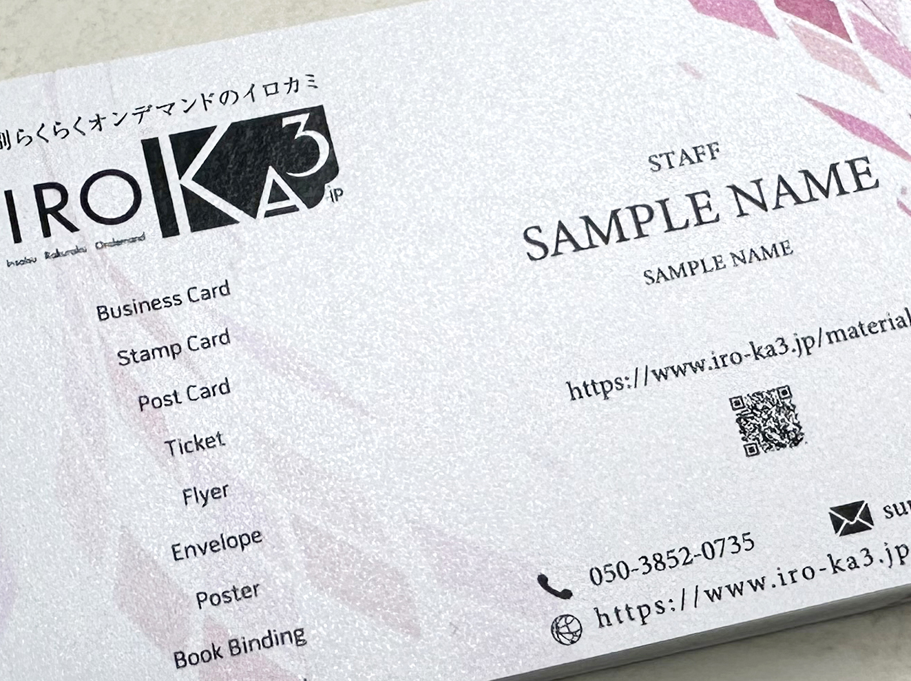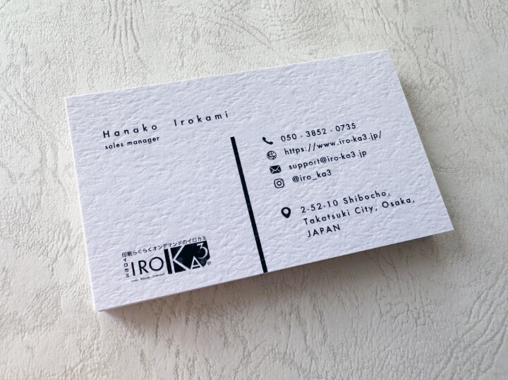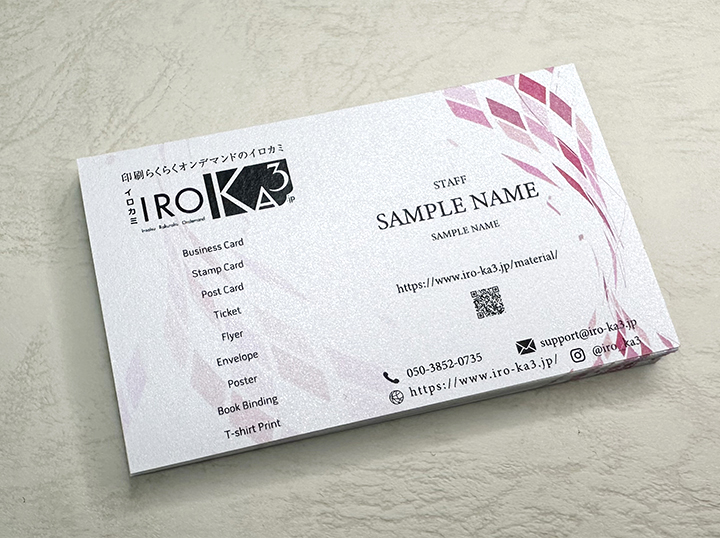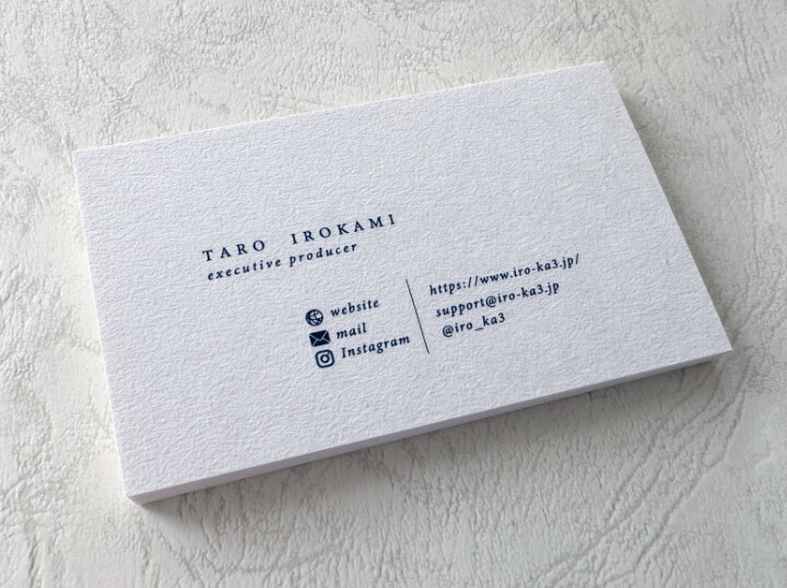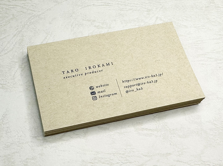 イロカミでは一般的な名刺の用紙以外にも、豊富な種類の用紙の中から、