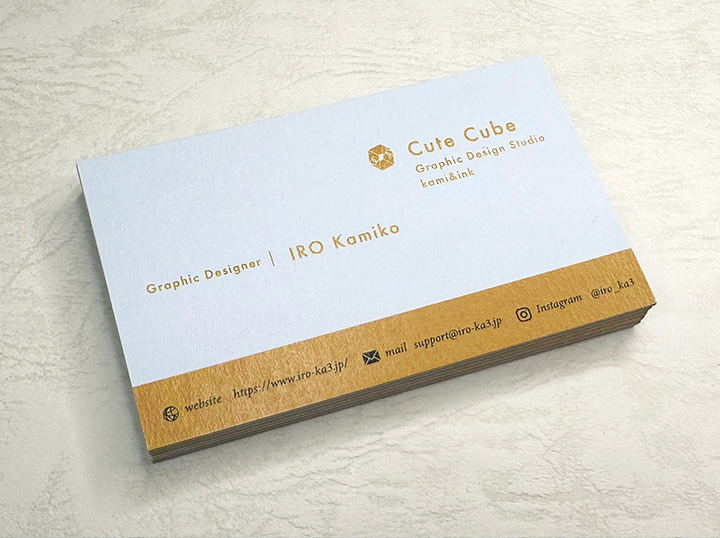 ワンポイントのロゴマークや金文字、キラキラ名刺でインパクトのある名刺を作りたい…でも費用は抑えたい、少ない枚数で作りたい…イロカミの『箔加工』はそんな要望にお応えします。